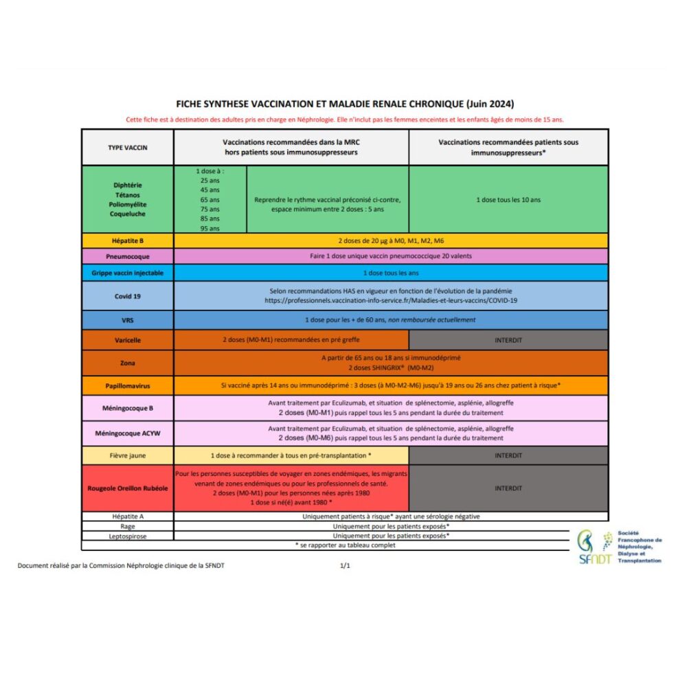 Recommandations vaccinales pour les patients atteints de maladies rénales Élaborée par la SFNDT, cette fiche synthétique offre des conseils pratiques sur la vaccination des personnes vivant avec une insuffisance rénale…